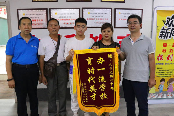 太原文韬教育校长魏高俊接过锦旗,开心地表示,家长送锦旗的行动是对文韬教育全体老师努力付出的肯定,是对文韬教育17年风雨兼程的认可,也是对文韬教育今后中、高考复读培训工作的激励和鞭策。文韬教育的全体工作人员一定不负家长的重托,继续前行。