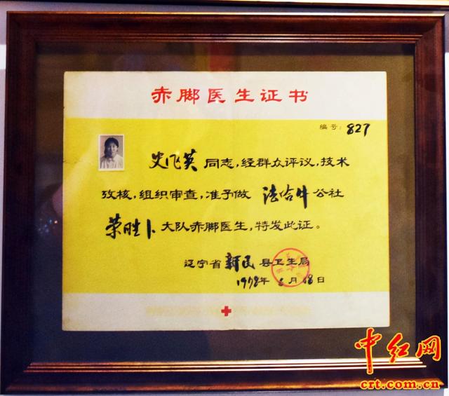 北京周氏时珍堂中医药文化博物馆收藏的赤脚医生证书。(中红网金梅摄)