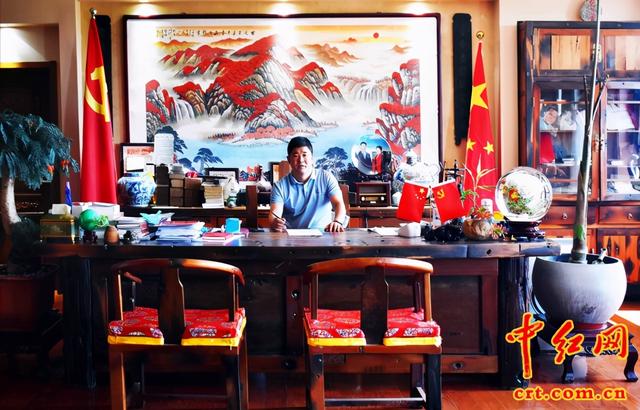 北京周氏时珍堂药业有限公司董事长、北京周氏时珍堂中医药文化博物馆馆长周海利在他的办公室。(中红网金梅摄)