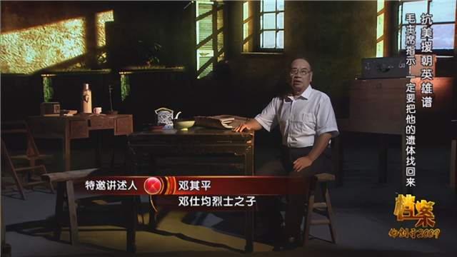志愿军烈士邓仕君之子邓其平今天将在北京卫视为大家讲述的他父亲的英雄事迹。