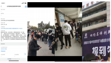 现场混乱图片、经查阅北京市工商管理局和北京市相关部门,经营范围:无教育培训资质图片如下: